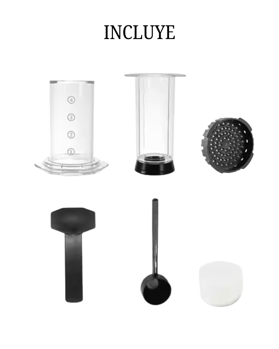 La AeroPress es perfecta para quienes disfrutan un café con sabor auténtico, sin importar dónde estén. Diseñada para viajes, camping y uso al aire libre, combina practicidad y estilo moderno ideal para una preparación artesanal sin complicaciones.