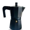 Esta cafetera tipo moka destaca por su acabado negro mate, elegante y sobrio. Su cuerpo de aluminio fundido garantiza una distribución uniforme del calor, mientras que su mango ergonómico permite un uso seguro y cómodo.
