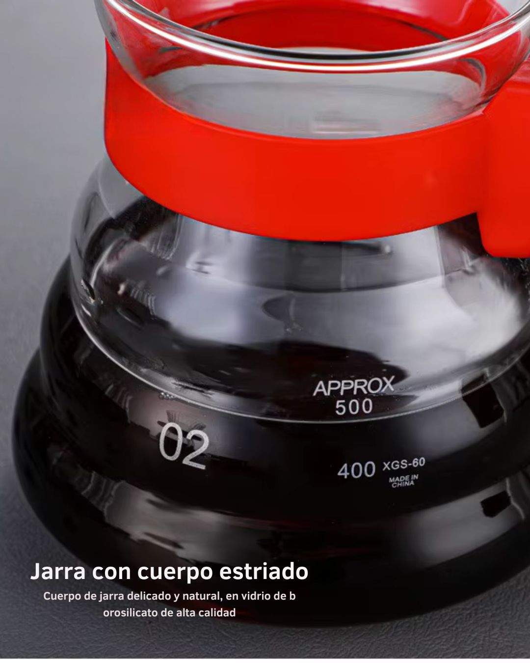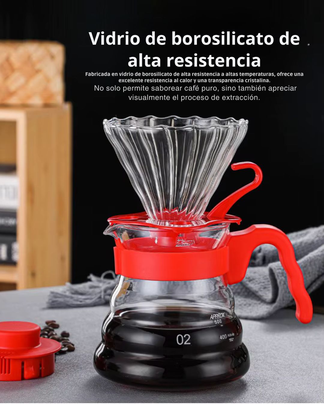 Fabricado en vidrio de borosilicato de alta calidad, este set presenta un estilo de diseño clásico y elegante. El material transparente permite observar claramente el proceso de extracción del café, aportando tanto funcionalidad como valor estético.