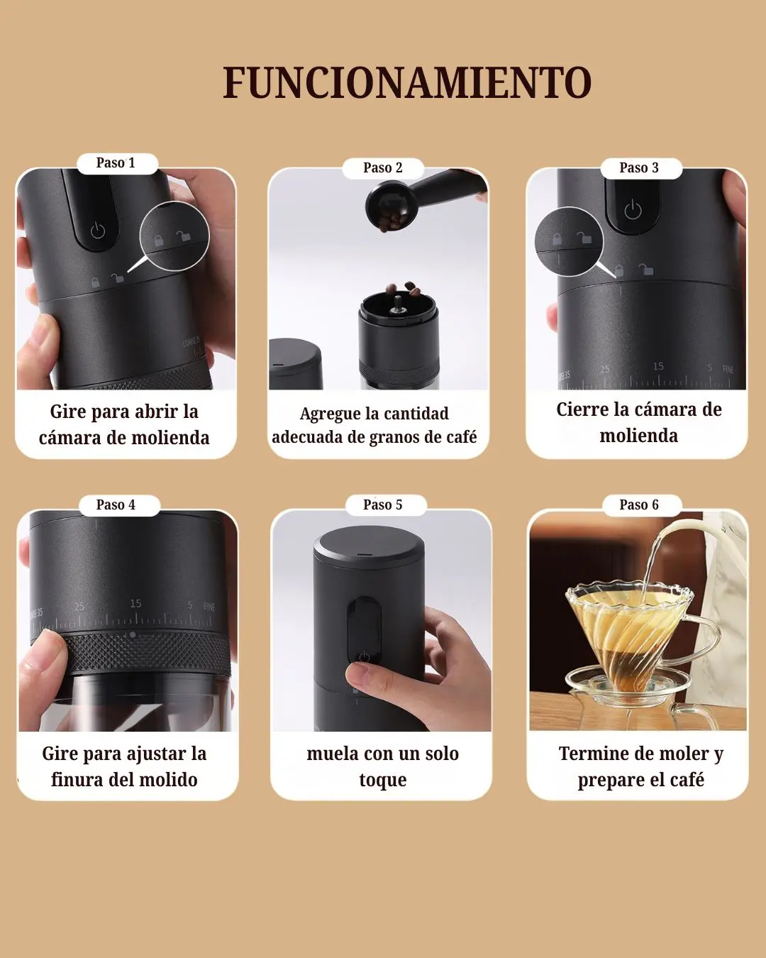 Sus cuchillas de cerámica y motor garantizan una molienda rápida, uniforme y precisa, manteniendo el aroma y los aceites esenciales del grano.