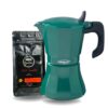 La Cafetera Italiana Petra Verde de 9 Tazas combina tradición cafetera y diseño vibrante. Su color verde y estructura robusta la convierten en una moka llamativa, práctica y duradera. Prepara hasta 6 tazas de espresso (300 ml aprox.), ideal para compartir momentos o disfrutar varias tazas en el día.