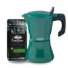 La Cafetera Italiana Petra Verde de 9 Tazas combina tradición cafetera y diseño vibrante. Su color verde y estructura robusta la convierten en una moka llamativa, práctica y duradera. Prepara hasta 6 tazas de espresso (300 ml aprox.), ideal para compartir momentos o disfrutar varias tazas en el día.
