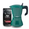 La Cafetera Italiana Petra Verde de 9 Tazas combina tradición cafetera y diseño vibrante. Su color verde y estructura robusta la convierten en una moka llamativa, práctica y duradera. Prepara hasta 6 tazas de espresso (300 ml aprox.), ideal para compartir momentos o disfrutar varias tazas en el día.