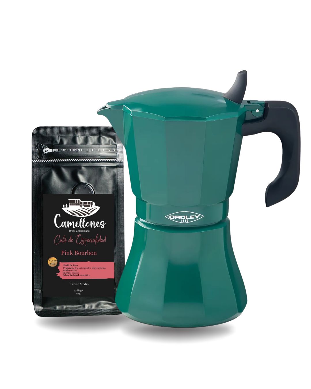 Fabricada en aluminio fundido, esta cafetera asegura una distribución de calor uniforme, permitiendo una extracción intensa y equilibrada. Su acabado en color verde aporta vitalidad a tu cocina.
