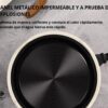 Incluye válvula de seguridad, base resistente y tapa con bisagra sólida. Compatible con cocinas a gas, eléctricas y vitrocerámicas.