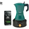 Pack Cocina Eléctrica Portátil Negra + Moka Verde de 9 Tazas + Café Evocación 100g Molido