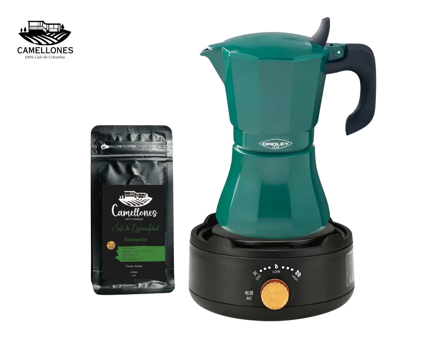 Sé el primero en valorar “Pack Cocina Eléctrica Portátil Negra + Moka Verde de 9 Tazas + Café Evocación 100g Molido”