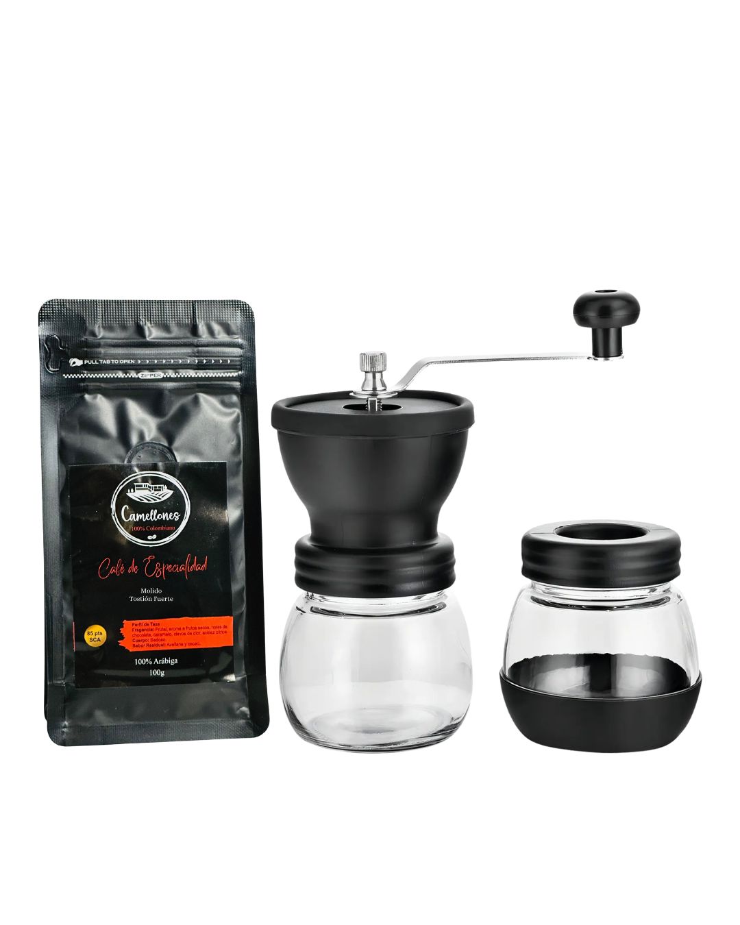 Un molino manual de café, con muelas de cerámica. Sin electricidad, sin apuros: solo tu mano y el aroma de los granos recién molidos.
